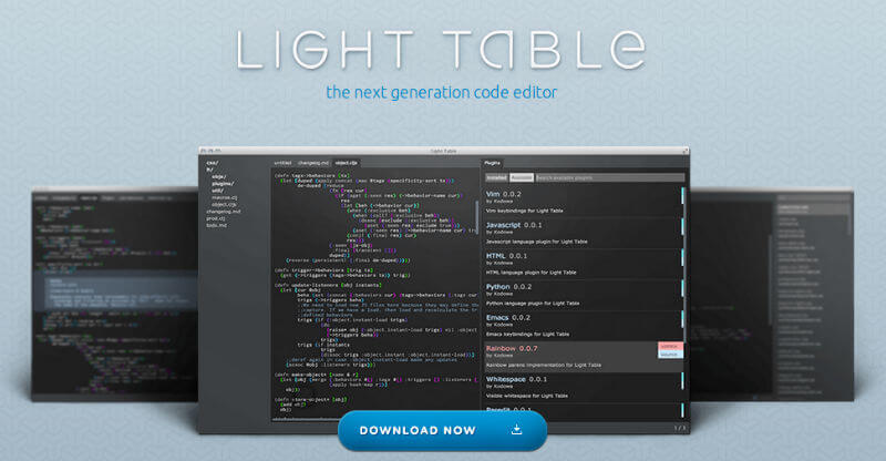 Light Table نسل جدید ویرایشگر کد منبع باز بوده که تیم بسیار بزرگی در توسعه و به روز رسانی های آن نقش دارند.