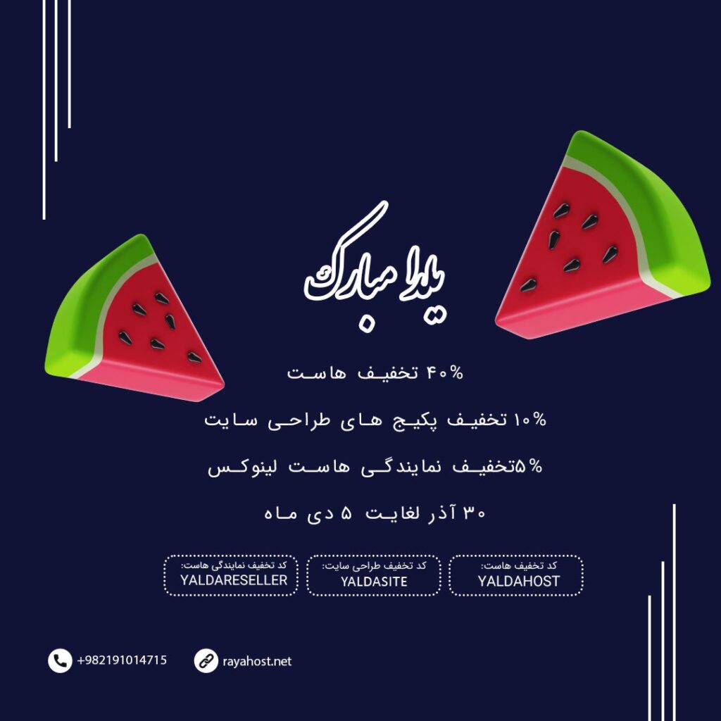 مطابق هرسال ، با پایان پاییز و شروع فصل زمستان، تخفیف های ویژه ای برای مشتریان عزیز درنظر گرفته ایم. مجموعه رایاهاست ضمن عرض تبریک به مناسبت فرارسیدن آیین باستانی یلدا و شروع فصل زمستان، تخفیف های خود را به شرح ذیل و مطابق با تصویر روبه رو اعلام می دارد. 40% تخفیف ویژه […]